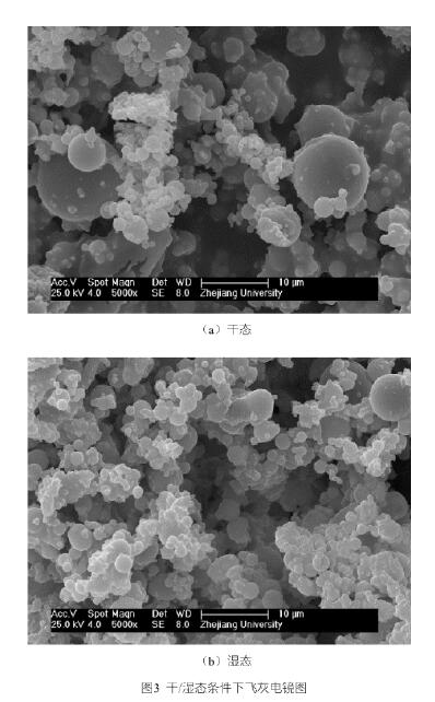 此外,還對濕態(tài)與干態(tài)條件下進(jìn)口處粉塵形貌變化進(jìn)行了表征。采用電子顯微鏡拍攝,放大倍率均為5000倍,采用鍍鋅片作為顆粒物的載體,可清晰觀測到10μm左右顆粒物形態(tài)。從圖3中可看出,在濕態(tài)狀態(tài)下,大顆粒物明顯減少,細(xì)顆粒物團(tuán)聚增強,且顆粒邊緣清晰度降低。由此可見,液滴對10μm及以下的顆粒物具有一定的清洗作用,同時對細(xì)顆粒物具有團(tuán)聚的作用。